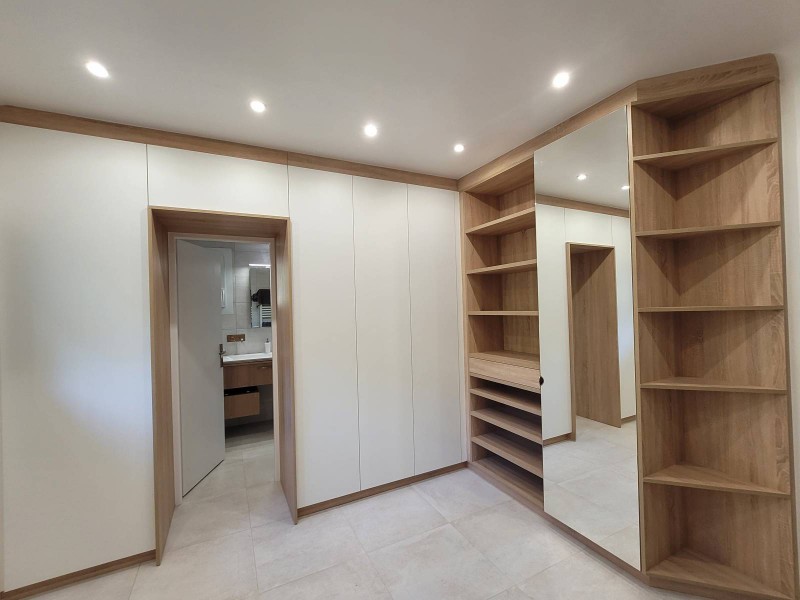 La présence d'un miroir sur une des portes du meuble, éléments indispensable du dressing, ajoute une touche esthétique supplémentaire.